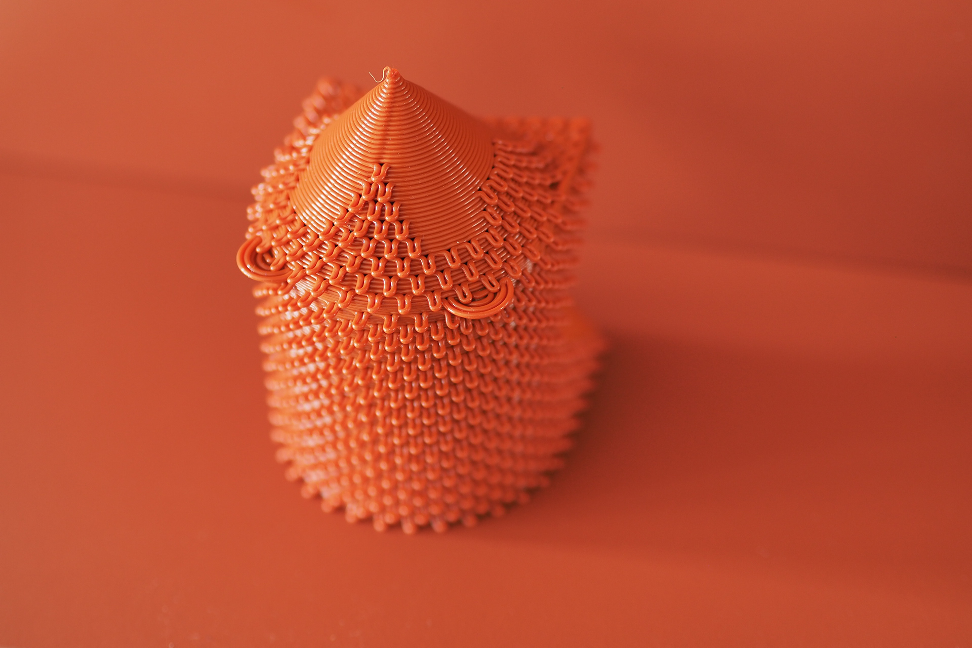This project was first made for a exhibition at Gdynia Design Days in 2017. Since then I updated and optimized the geometry to be printed in one go, in a single uninterrupted line. It was an exercise in custom gcode writing and texturing that resulted in a eye-catching sensory object.