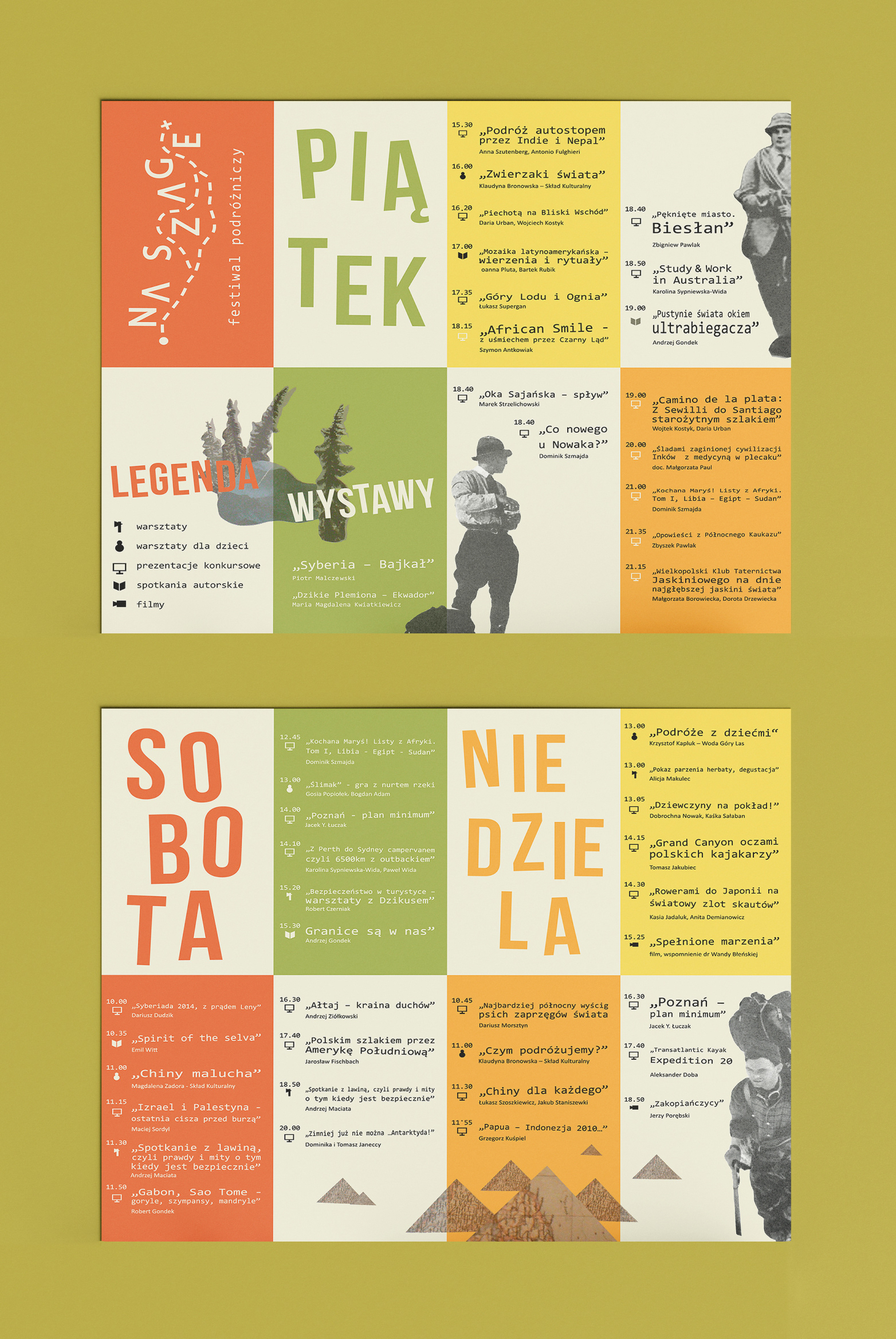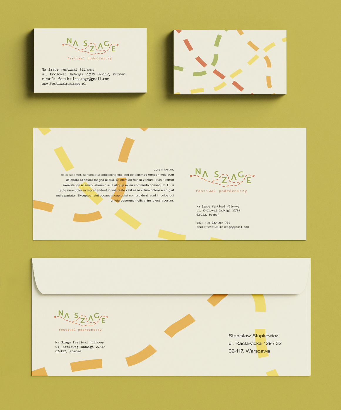 Prints and rebranding proposal for "Na Szage" - travel and film festival located in Poznan, Poland.